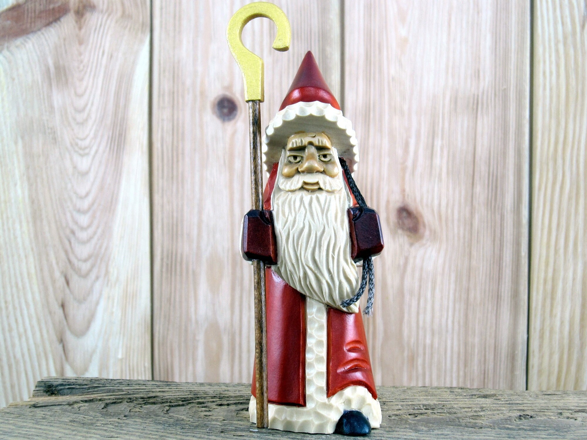 Wood Carved Santa Etsy