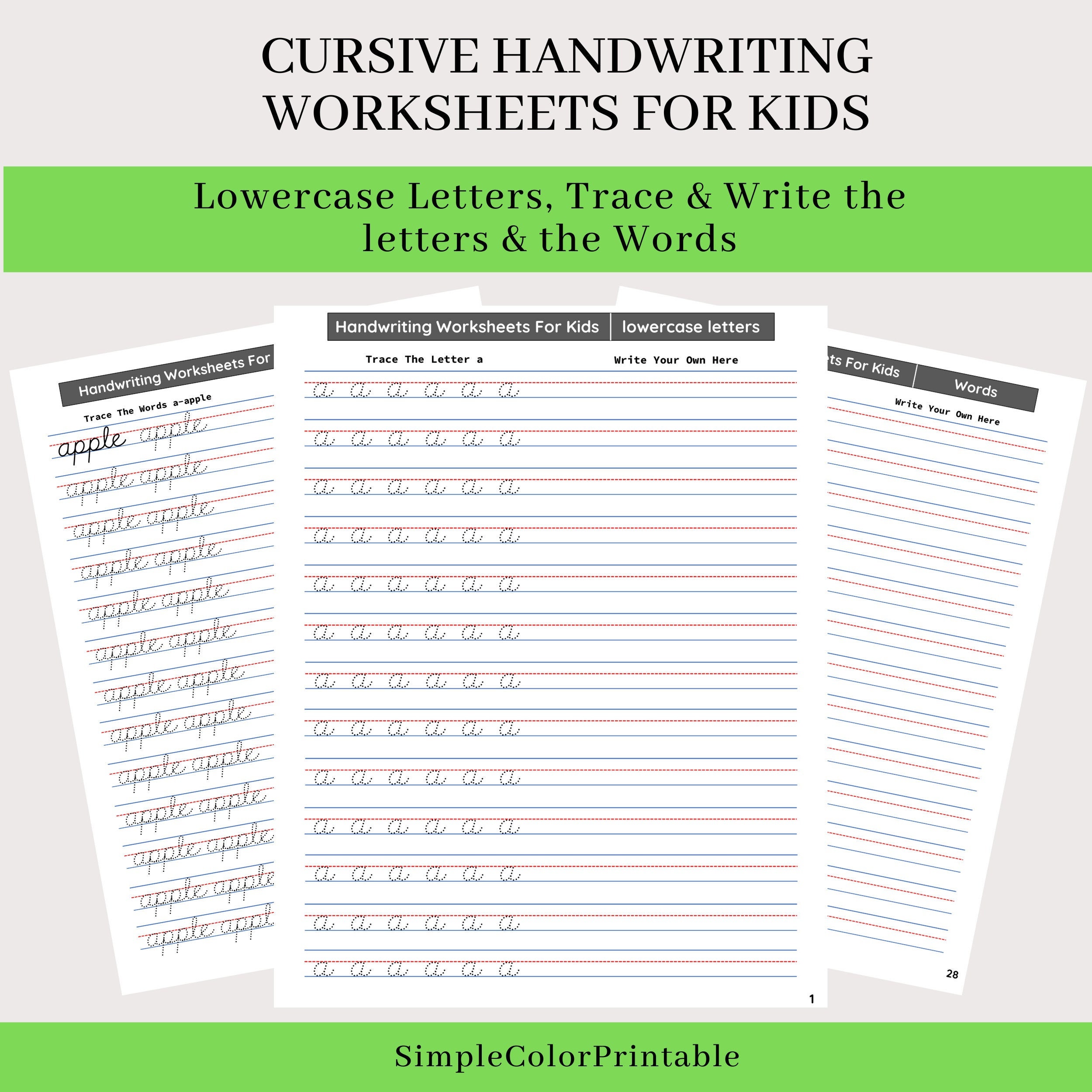 52 Cursive Handwriting Worksheets Printable Write The Lowercase Letters Write The Words Handwriting Practice Worksheets Etsy